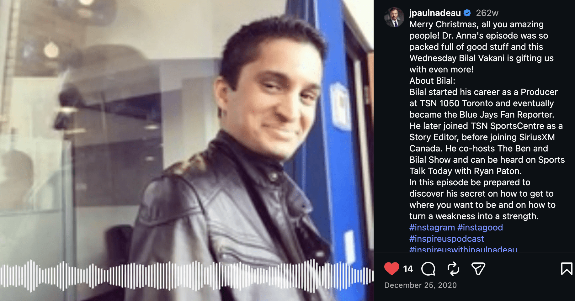 With over 12 years of experience with TSN, TSN 1050 and SiriusXM Canada in roles ranging from Story Editor, Senior Producer, Reporter, Host and more. I have worked with the likes of Peter Mansbridge, Bob McCown, Jessi Cruickshank among others. Helping podcasts nearly double their growth to 10 million downloads. Don’t believe me? Well I was the first person Peter Mansbridge tagged me when he reached 10 million downloads! He went on to reach over 17 million while working with me. I have had clips from my own SiriusXM show reach up to 133k (others at 100k) such as this one below.
